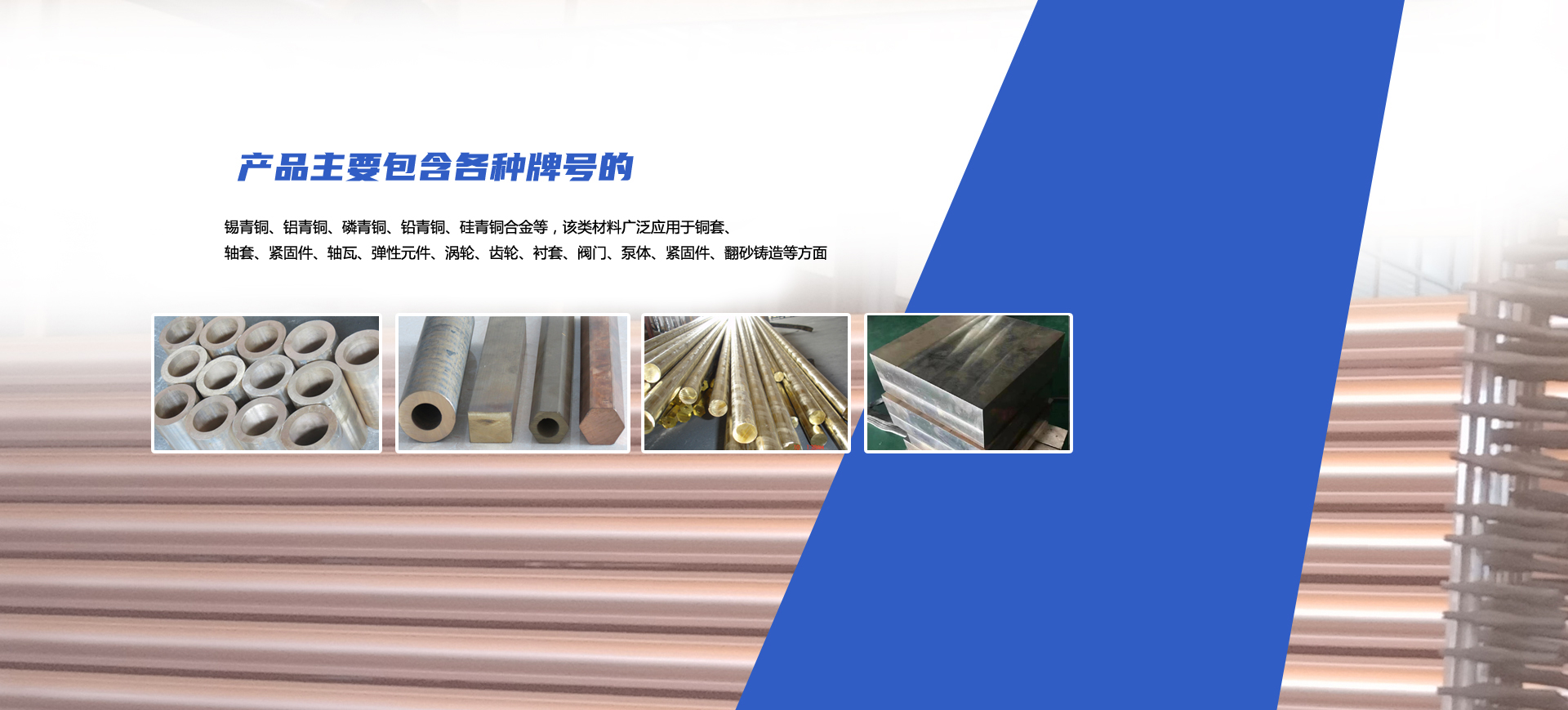 公司擁有多條連鑄熔銅生產線,并配備全分析直讀光譜儀、專業從事銅合金材料的研發、加工、銷售,產品主要包含各種牌號的錫青銅、鋁青銅、磷青銅、鉛青銅、硅青銅合金等,該類材料廣泛應用于銅套、軸套、緊固件、軸瓦、彈性元件、渦輪、齒輪、襯套、閥門、泵體、緊固件、翻砂鑄造等方面。